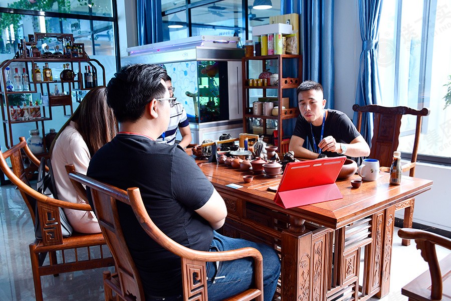 參觀結(jié)束后,在會議室,董事長助理為廣英科技園的領(lǐng)導(dǎo)就此次項目進行PPT講解。包括公司介紹、工程案例、設(shè)計詳解、施工流程。